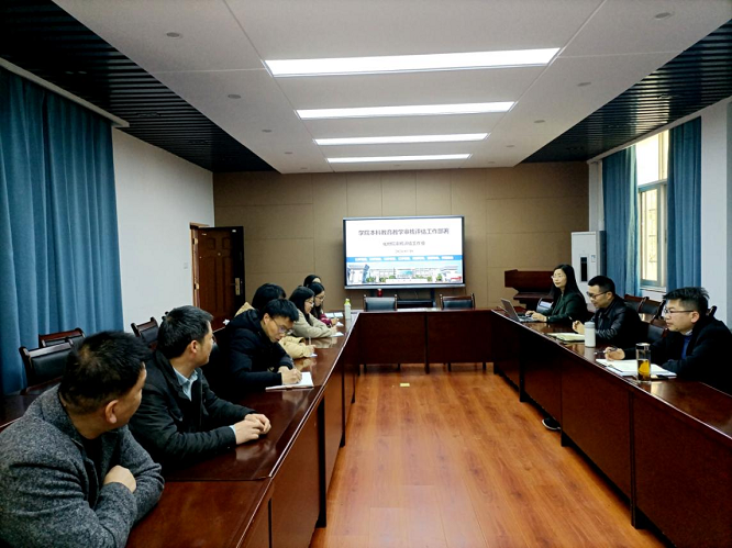 龚霞副院长介绍了评建工作总体架构、审核评估任务分解、二级学院评建工作部署情况。她强调,各部门要明确工作职责,明确任务分工,落细落实审核评估各项工作,提升学院的自觉、自省、自查、自纠能力,群策群力分析原因提出整改举措,切实做好教育教学评估审核工作。