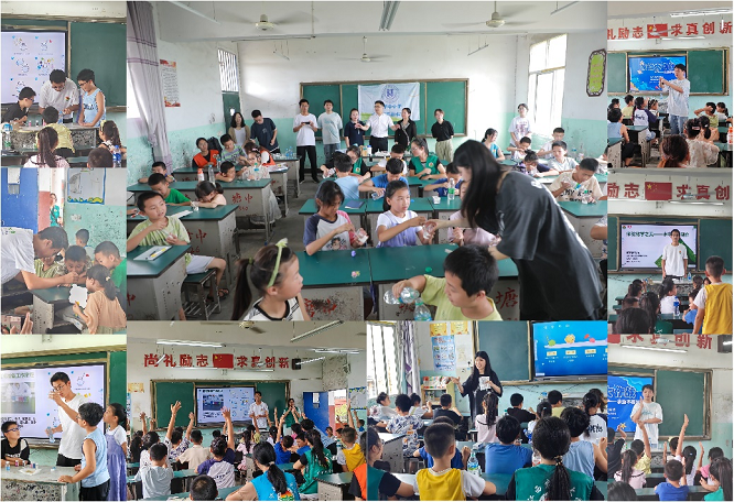 这次科普活动作为6165cc金沙总站外国语学院支教活动的一个专题,由6165cc金沙总站副院长龚霞、专业教师谭桂霞和王林玉,组织应用化学专业、材料化学专业学生组成科普团队,依据中小学科学课程、化学课程的核心素养,设计了包括“体验化学之美—水中花园制作、水油大作战一水油不相溶、探索神奇的物质—非牛顿流体、液体的“皮肤”一液体的表面张力、水的净化—明矾净水”等5个主题实验,设计了VR视频演示、沉浸式实验、有奖问答等环节,为中小学生进行科普宣讲,有效激发了学生的科学探究精神,锻炼了科普团队的团队合作能力和语言表达能力,实现了科普宣讲、社会实践、教育教学、志愿服务的完美融合。