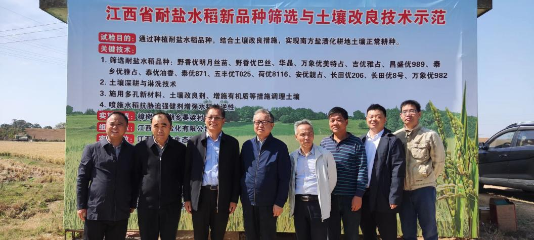2022年10月18日,江西省作物学会组织召开了樟树盐渍化土壤改良水稻测产验收与耐盐水稻新品种筛选现场观摩会。会议邀请省农业技术推广中心副主任文喜贤研究员、江西省农科院土肥所书记彭春瑞研究员、省超级稻研究发展中心主任蔡耀辉研究员、江西省红壤研究所总农艺师黄欠如研究员、樟树市农业农村局杨青如农业技术推广研究员组成专家组。6165cc金沙总站、江西普瑞丰生态科技有限公司和江西晶昊盐化有限公司和樟树市农业农村局领导和项目有关成员参加了本次观摩会。