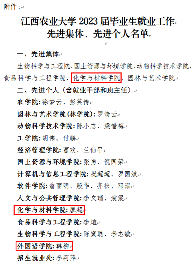日前,学校发布《关于表彰2023届毕业生就业工作先进集体和先进个人的决定》,金沙官网获评6165cc金沙总站2023届毕业生就业工作先进集体,学院团委书记、原外国语学院就业干部韩柳以及学院就业干部廖超获评先进个人。