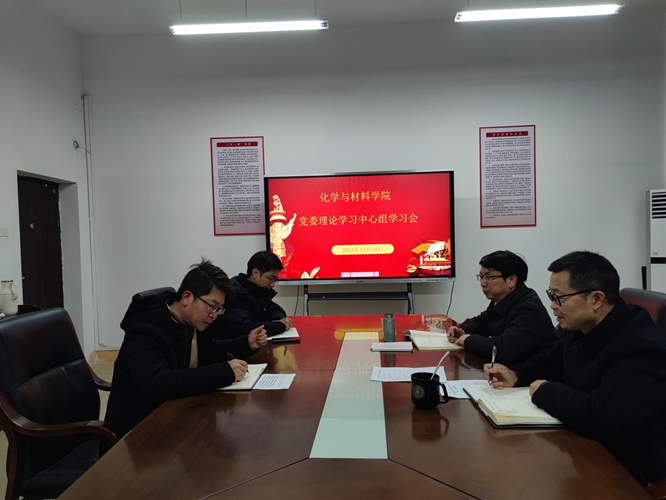 2023年12月18日8:10,学院党委理论学习中心组召开会议,开展习近平新时代中国特色社会主义思想学习。党委领导班子成员参会,会议由学院党委书记刘庆言主持。
