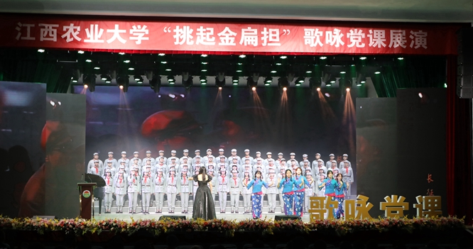 2023年6月13日晚,金沙官网党委组织师生党员、入党积极分子参加了学校“挑起金扁担”歌咏党课展演活动。