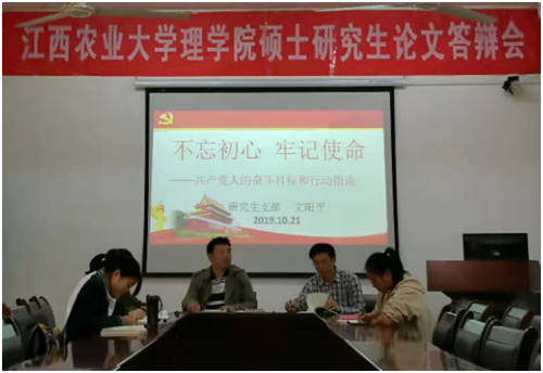 2019年10月21日中午,为深入开展“不忘初心、牢记使命”主题教育,理学院研究生党支部书记文阳平以“不忘初心、牢记使命,共产党人的奋斗目标和行动指南”为主题作了专题讲座。