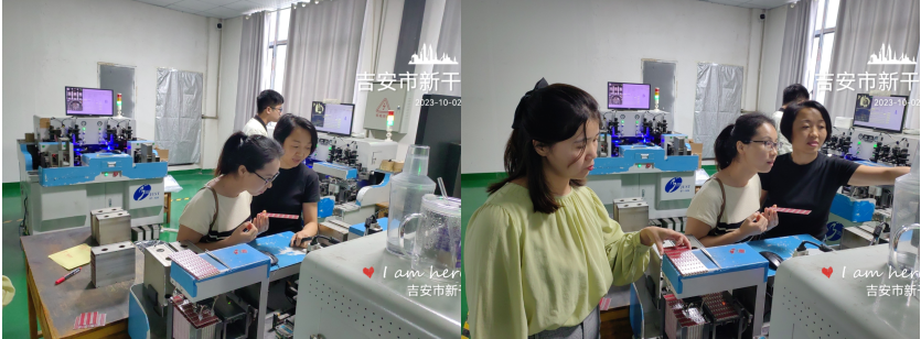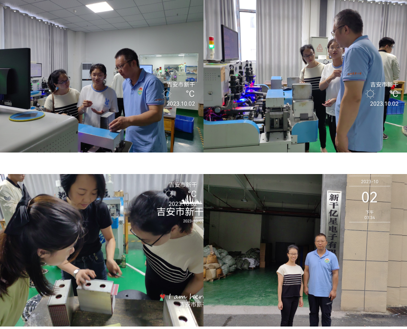 2023 年10月2日,为加强校企合作、推进“百博百企”项目进展和访企拓岗等工作,化学系支部党员贺雪梅博士和研究生支部党员黄喜根教授到新干亿星电子科技有限公司进行调研,总经理刘清辉介绍了目前的生产销售情况及技术难点问题,舒副经理陪同到车间调研,双方就如何申报和完善“百博百企”项目,形成了一致认识,双方充分利用国庆假日,加快完成项目申报。
