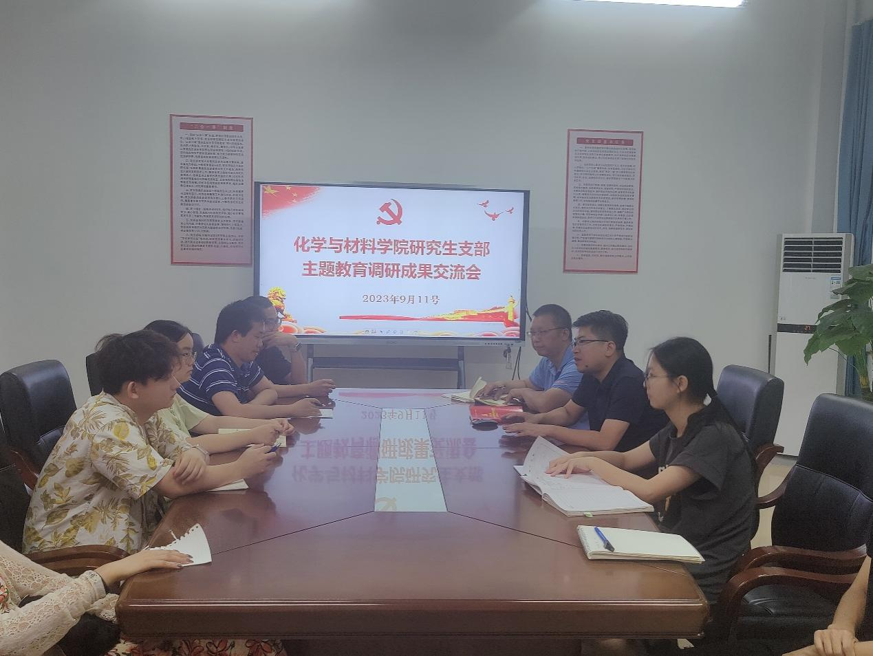 根据校党委关于开展学习贯彻习近平新时代中国特色社会主义思想主题教育的部署要求,2023年9月11日下午,研究生党支部在215会议室召开学习贯彻习近平新时代中国特色社会主义思想主题教育调研成果交流会,会议由党支部书记黄喜根主持,聚焦党支部成员反应的问题,总结交流,调查研究成果,梳理问题,研讨举措,进一步推动主题教育走深走实。