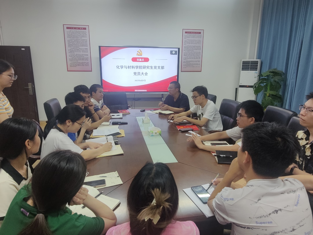 为充实研究生党支部的队伍,更好地发扬党支部全心全意为同学服务的宗旨,2023年6月9日在致理楼214,由研究生党支部书记黄喜根老师和党支部组织委员张晓华老师主持召开党支部大会,全体党员参加,积极分子列席,李伟线上进行。