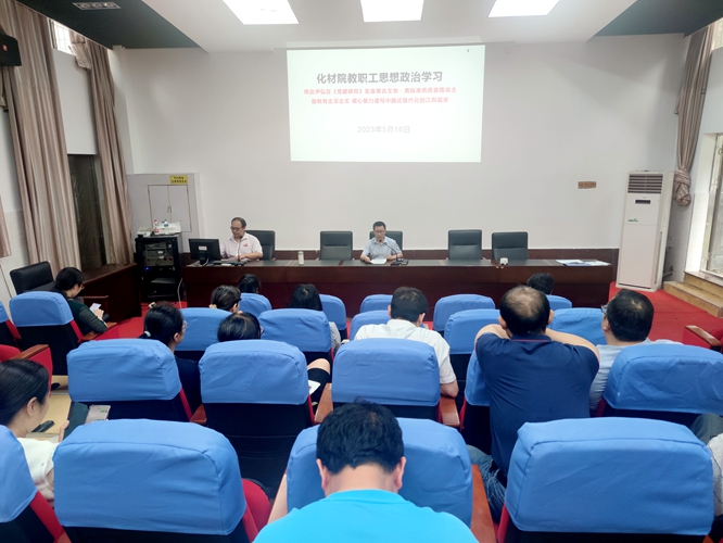 2023年5月16日14:00,为推动主题教育走深走实,学院在致学楼阶梯报告厅召开学院教职工大会,开展了5月份教职工思想政治学习。院党委书记刘庆言传达了省委书记尹弘在《党建研究》上发表的署名文章《高标准高质量推动主题教育走深走实,凝心聚力谱写中国式现代化的江西篇章》及文章《江西大兴调查研究实施方案出台》内容。