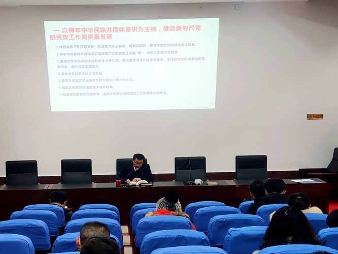 2022年12月13日14:10,学院在致学楼大会议室召开学院教职工大会进行了政治学习,院党委书记刘庆言带领全体教职工学习了《习近平谈治国理政第四卷》之十《积极开展全过程人民民主》的相关内容。