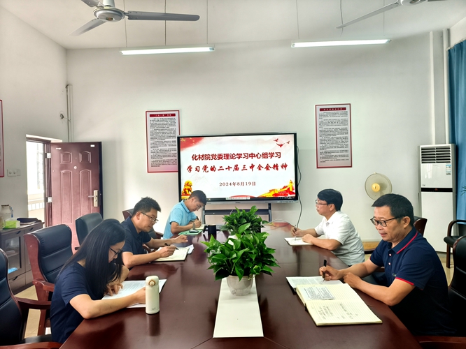 2024年8月19日9:00,学院党委理论学习中心组召开会议,学习党的二十届三中全会精神。全体党委委员参会,副院长龚霞、学生党总支书记彭玉萌列席会议,会议由学院党委书记刘庆言主持。