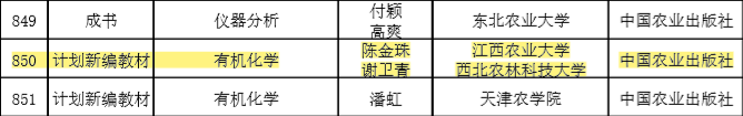 根据农业农村部科技教育司《关于组织开展首批农业农村部“十四五”规划教材申报工作的通知》(农科(教育)函〔2022〕11号)要求,经个人申请、学院审核、学校推荐、专家评审等程序,2023年4月6日,农业农村部公布了拟入选首批农业农村部“十四五”规划教材遴选结果,金沙官网陈金珠老师的《有机化学》,李艳霞、龚霞老师的《普通化学实验》,龚霞、李艳霞老师的《普通化学》3部教材成功入选。