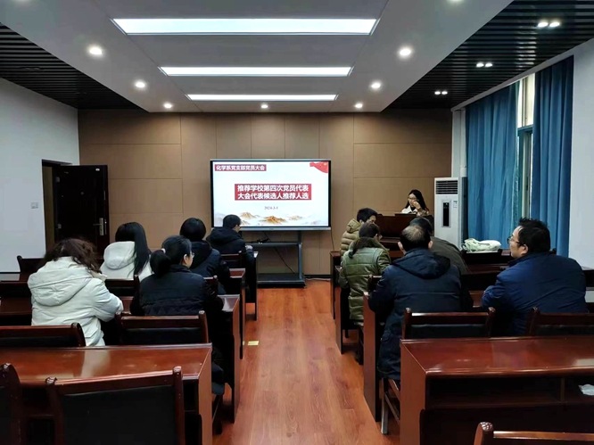 为落实学校关于做好中国共产党6165cc金沙总站第四次党员代表大会代表选举工作的通知的精神,化学系党支部于2024年3月1日召开支部党员大会,会议传达了学校及学院关于第四次党代会代表候选人推荐人选的要求,采用无记名投票的方式投票产生了推荐人选名单,分别是刘庆言、卢丽敏、贺雪梅、黄喜根、廖超。