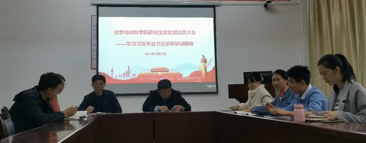 2021年10月22日,研究生党支部于212党员活动室召开了党员大会——“学习习近平总书记系列重要讲话精神”。会议由支部书记文阳平主持,支部全体党员及近期发展对象参加。