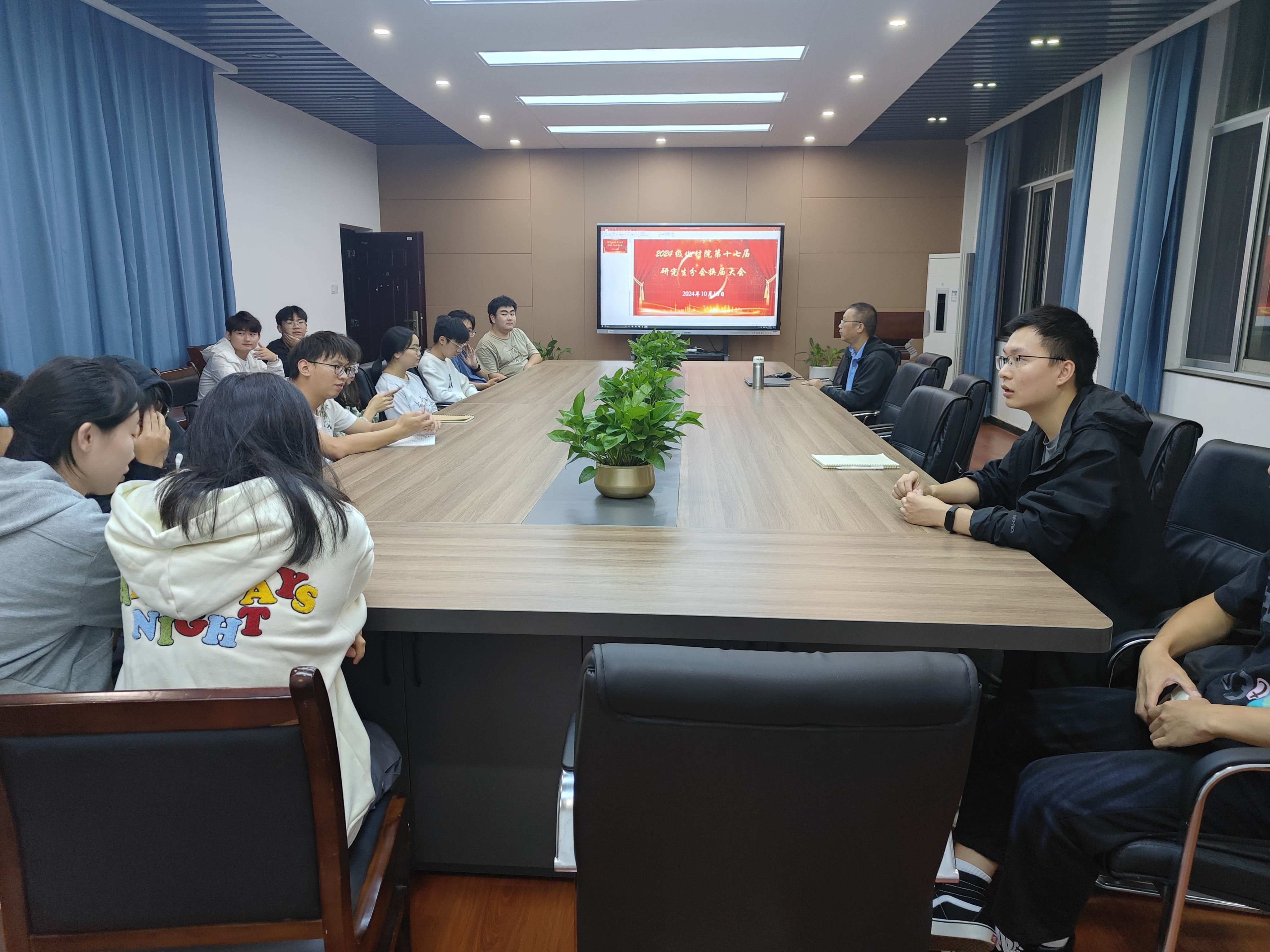 为了促进金沙官网新老研究生之间的交流及完成研究生分会换届,2024年10月10日晚在6165cc金沙总站研究生教室,由化学与材料党支部书记黄喜根书记、6165cc金沙总站支委王艺霖老师主持召开2024级研究生研究生分会第十七届换届大会,此次见面会6165cc金沙总站全体在校研究生均已参加。