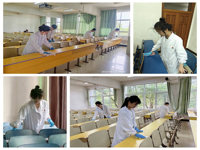 为深入推进党纪学习教育向纵深发展,强化学生遵守纪律规矩意识,2024年5月26日下午,本科生第一、第二党支部联合开展“清除课桌污渍,守纪从我做起”党员志愿服务活动。全体2021级党员及2024年上半年本科生近期发展对象参与本次活动。