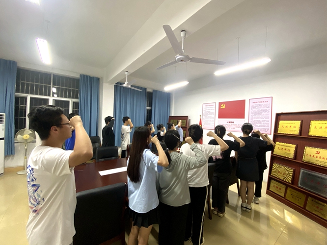 会后,本科生第一、第二党支部联合举行了新发展党员入党宣誓仪式。