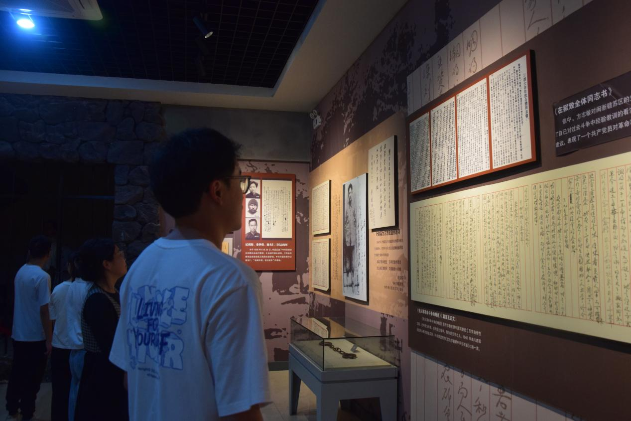 烈士墓前,庄严肃穆,两位党员代表迈着沉重的步伐向方志敏烈士敬献花圈,全体党员在烈士墓前重温了入党誓词。随着讲解员的脚步,大家走进了方志敏烈士文物陈列馆,通过参观展览馆内的生平事迹介绍和相关图片资料,再一次感受到了方志敏烈士为共产主义献身的钢铁般意志、坚贞不屈的革命气节和勇于牺牲的担当精神。