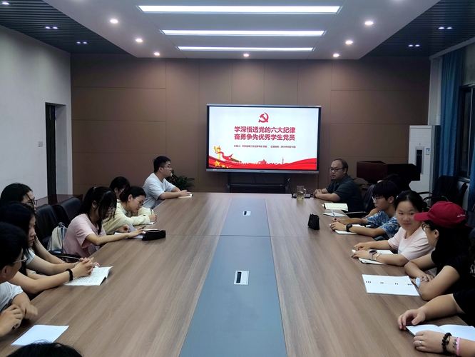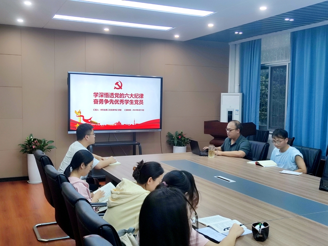2024年6月18日18:30,本科生第二党支部书记廖超以“学深悟透党的六大纪律”为题,为支部党员讲授纪律党课。