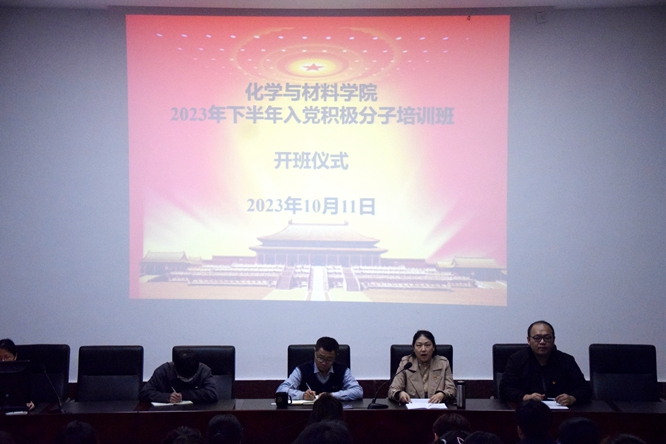 在全院上下深入学习贯彻习近平新时代中国特色社会主义思想和党的二十大精神,巩固深化主题教育成果之际,2023年10月11日18:30,学院党委分党校2023年下半年入党积极分子培训班开班仪式在学院阶梯报告厅隆重举行。学院党委书记、分党校校长刘庆言,党委副书记、分党校副校长叶健,本科生第一、第二党支部书记及入党积极分子培训班学员共37人参加本次开班仪式,叶健主持本次开班仪式。