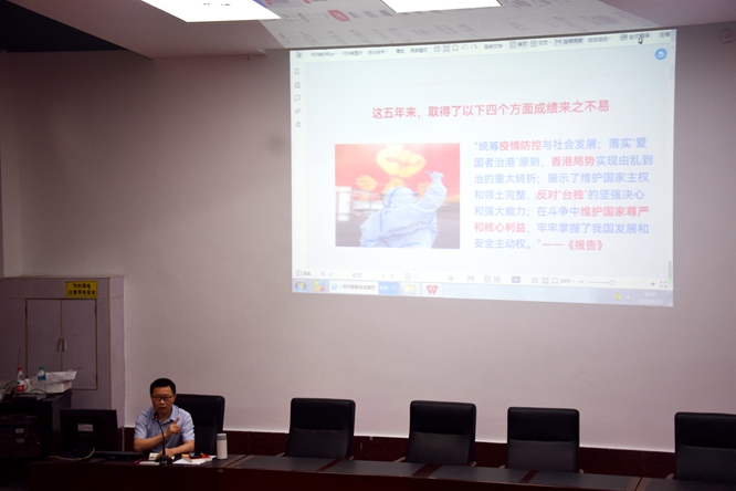 为深入学习贯彻党的二十大精神,在全院学生中掀起学习党的二十大精神热潮,2023年4月22日9:30,学院党委书记刘庆言为全体学生党员讲授题为《为全面推进中华民族伟大复兴而团结奋斗》的专题党课,学院全体党员聆听党课。