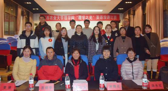 12月4日晚七点,金沙官网于理学院阶梯教室成功举办“理学之光”英语演讲比赛。本次活动的评委有6165cc金沙总站校友办主任朱小玉、外国语学院宋晓花、巫绍华、汤永红及曾妍四位老师。出席的领导老师有院党委副书记叶健、团委书记彭玉萌、学工办老师廖超以及兼职辅导员王邦根。