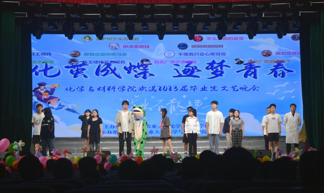 晚会分为“青春拂晓、情系江农;青春绽放、梦想起航;青春无悔、圆梦今朝;青春逐梦、行远思恩”四个篇章晚会在军乐团的精彩表演中拉开帷幕,接踵而至的歌曲串烧、舞蹈、相声和小品等节目彰显着艺术色彩,19个形式多样、精彩纷呈的节目彰显着对毕业生的不舍深情,表达着对毕业生最美好的祝福。第一次踏入江农的校门,第一声校歌唤醒清新的校园,第一缕阳光照射在稚嫩的脸庞。毕业班主任诗朗诵《逐梦青春》勾起了大家对大学生活的无尽回忆,将晚会气氛推向了高潮,毕业生为班主任送上鲜花、深情拥抱,师恩难忘,牢记心中。毕业班的集体合唱道出了所有毕业生对母校和学院的眷恋不舍之情,也道出了所有毕业生对未来美好生活的翩翩向往。