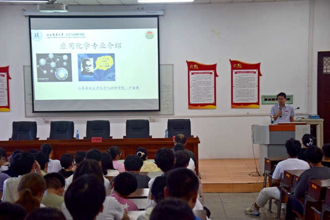 讲座中,卢丽敏围绕“漫话化学魔力”、“简述专业特色”及“浅谈大学能力培养”三个方面,详细介绍了应用化学专业及化学学科的发展历程,着重展示了学院、专业的师资力量和人才培养成果,并希望全体新生要学会具备适应环境的能力、自学的能力、语言表达的能力、独立自主的能力和识人交友的能力。刘书武细致阐述了材料化学作为一门交叉学科所具备的实用性和前沿性,并建议学生在大学期间要学会学习和为人处世,经常性参加实践活动和体育锻炼,树立远大目标。