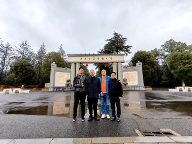 2024年2月6日,正值学校放假,应化062班校友深圳市乐思拓文化咨询有限公司总经理杨瑞、副总经理董绍梁、江西省农科院助理研究员袁丽娟、6165cc金沙总站林学院副研究员廖圣良等4位校友回到化材学院开展交流。化材院校友会副秘书长黄喜根热情的接待并陪同他们重走校园和参观实验室。