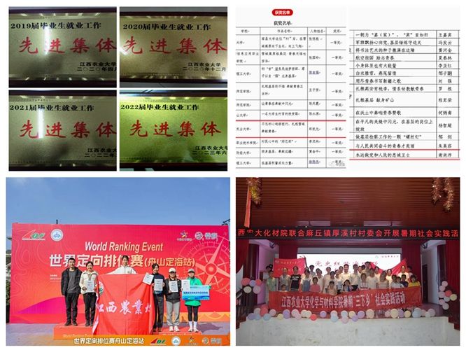 促进学生全面健康发展有亮点。学院结合学生个人特点和成长规律,分阶段、按层次、多举措促进学生全面健康发展。以“考研交流会”、“专业恳谈会”、“复试模拟会”等方式助力学生考研深造,学院考研升学率常年位居学校前列,五年考研升学率平均达到45.96%,2022年更是达到了54.74%,帮助了528名学生实现深造梦想,相关经验做法获江西省高校思想政治工作案例一等奖。以“化学实验技能竞赛”、“学习笔记评比”等活动推进学风建设、凝聚创新氛围,学生在“互联网+”“挑战杯”等创新创业大赛中获得省级以上奖励20余项。此外,学院致力于促进学生德智体美劳全面发展,鼓励学生向先进看齐、向优秀看齐,沈佳慧同学获得2023世界定向排位赛公开组W21组短距离赛第一名,为学校赢得国际体育赛事首金,还有多名学生获得“中国大学生自强之星”提名奖、“江西省大学生自强之星”、“江西省优秀共青团干部”、“江西省青年志愿服务”优秀个人、“江西省优秀共青团员”等荣誉称号。