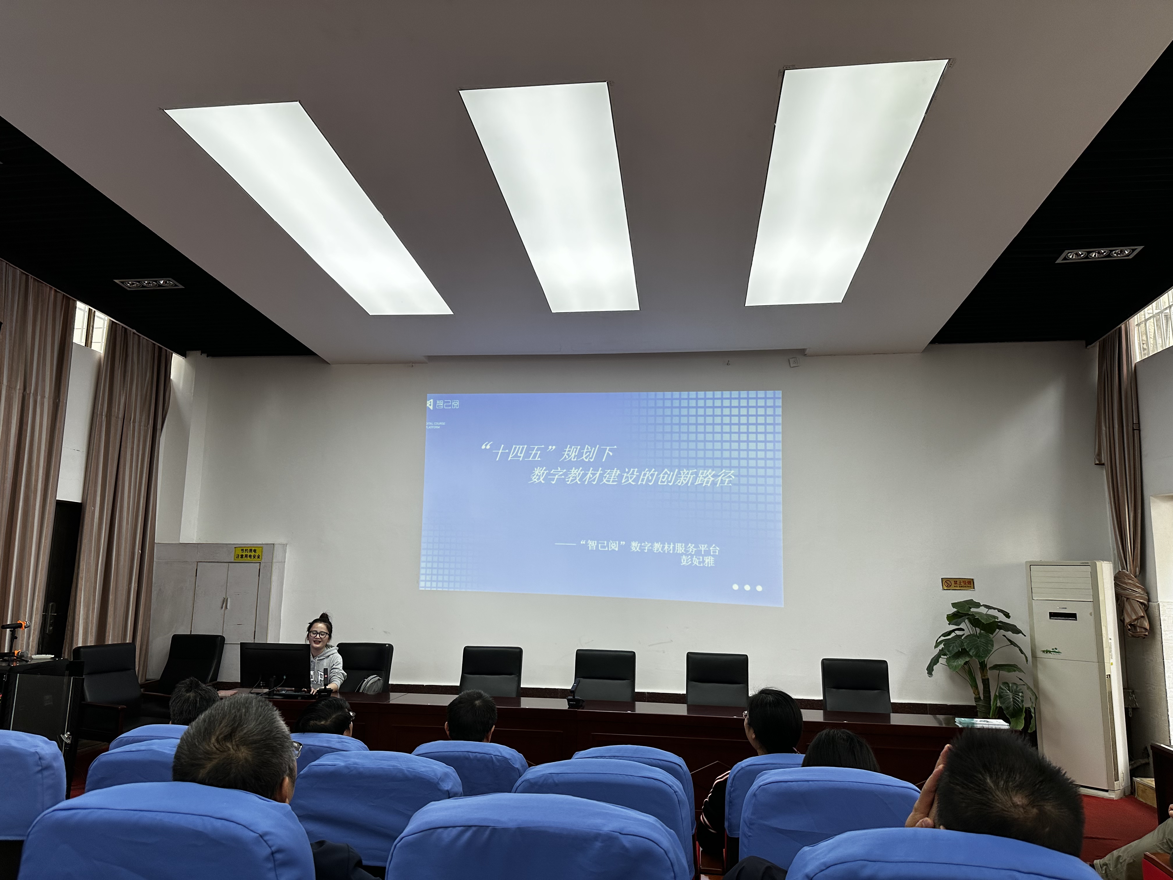 彭妃雅编辑作“‘十四五’规划下数字教材建设的创新路径”的专题讲座,从数字教材建设背景、内涵特征、编写规范、建设路径等方面进行介绍;重点阐述了数字教材设计理念、内容编排、资源建设、呈现形式;强调了数字教材作为教育数字化转型的重要途径,具有开放性、互动性和智能性等特点,能够为教学活动提供更加丰富、多元和个性化的资源支持。与会教师就数字教材建设与使用等方面进行了深入探讨。