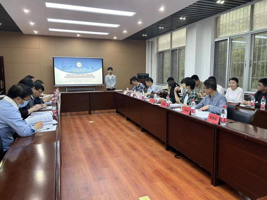 王院长首先致辞,并介绍了答辩主席和答辩委员会的成员。随后,汪莉教授对学位论文答辩评价标准和答辩流程进行了简短的介绍。论文答辩主要分为现场陈述和老师评审提问两个环节。按照答辩流程,10位硕士研究生通过PPT形式介绍论文框架、研究内容、创新点、研究成果等;答辩委员会成员依次针对性地提出学术问题;答辩学生依次对评委们的提问做出回答,并表示答辩之后将进一步修改、充实和完善毕业论文。