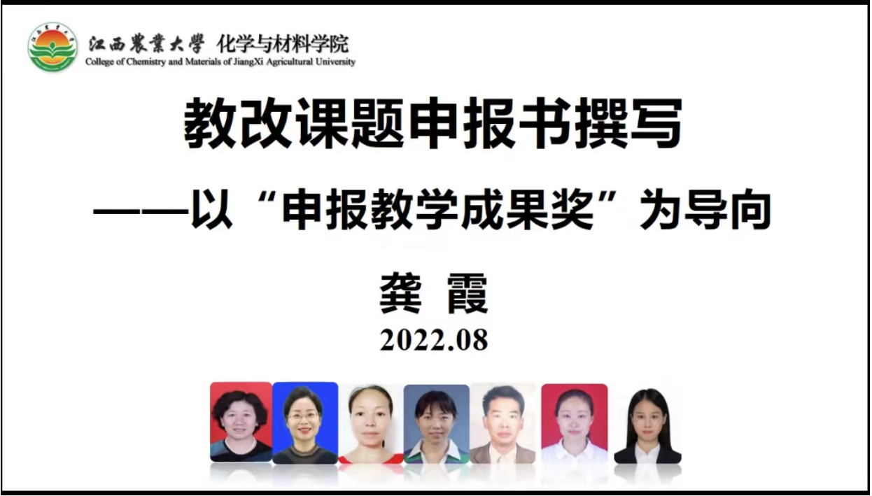 为进一步做好2022年江西省高等学校教学改革研究课题申报工作,充分调动和激发学院教师申报积极性,提高申报质量。2022年8月13日晚上,龚霞教授应学院邀请,以线上会议的形式为金沙官网全体教师作了题为《教改课题申报撰写》的学术报告。学院相关领导及教学一线教师线上听取了报告。
