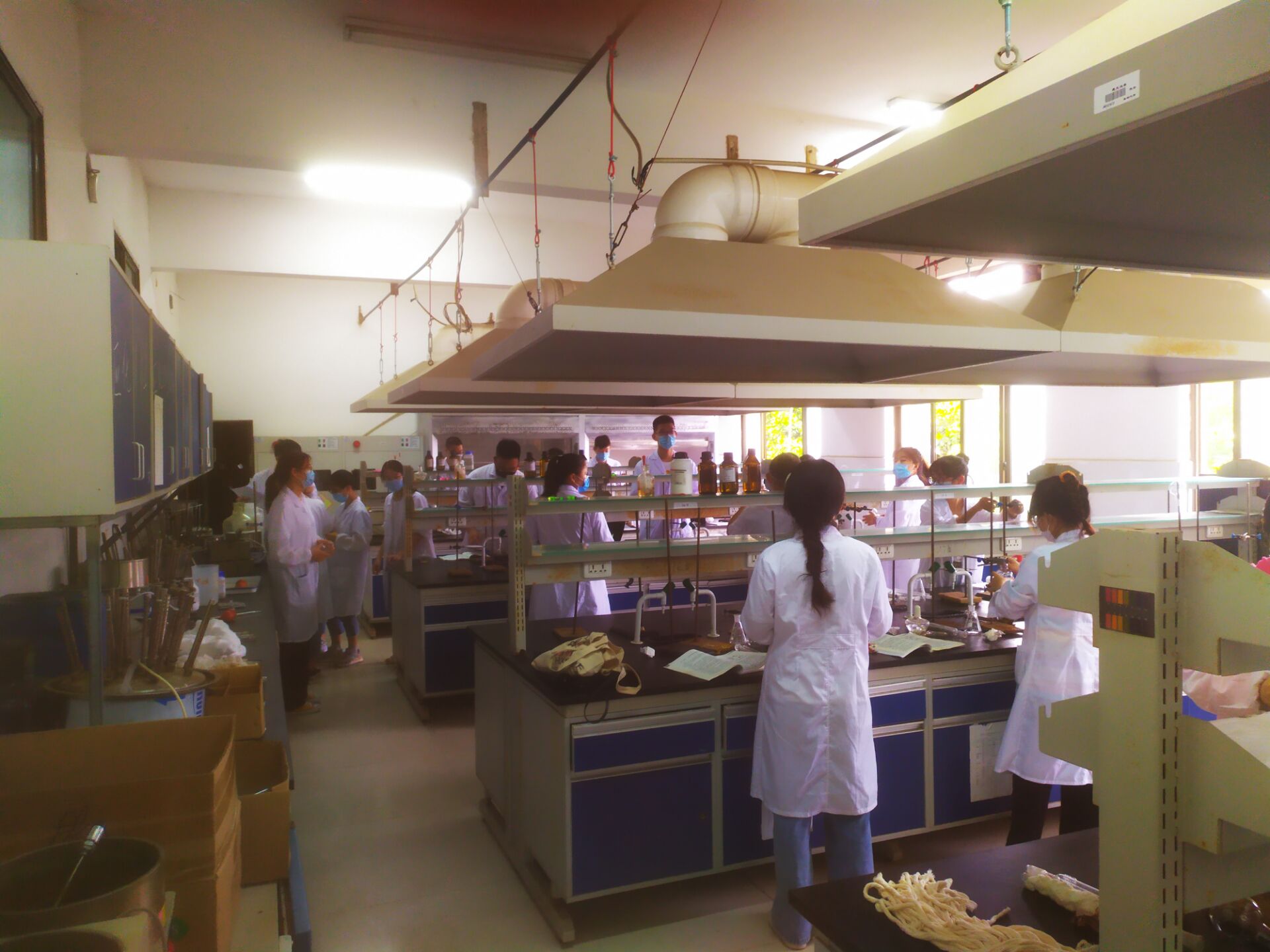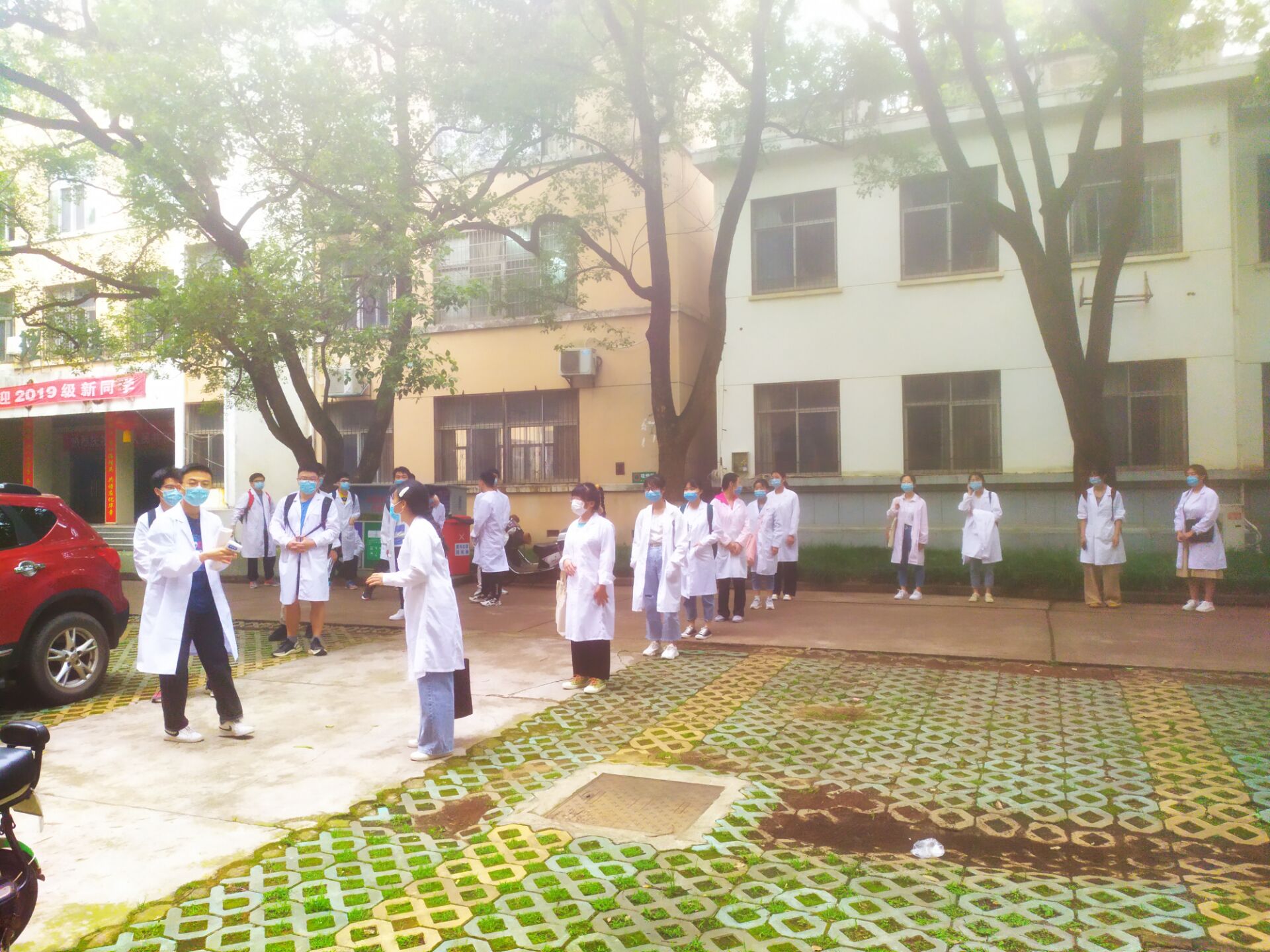 “消毒,测温,隔距,排队”。5月27日起,金沙官网18级的110名同学开始上线下实验课。为保障学生线下课程的安全有序,学院领导一大早便到实验楼门口协调学生进实验楼的消毒、检测程序,强调安全防护知识。学院坚持每天早晚对实验楼各进行一次全面消毒,每天只安排一个自然班进楼上实验课,每个自然班又再分成小班开展实验教学,尽一切努力确保学生线下课程安全有序。