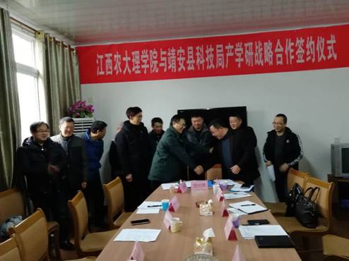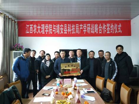 2019年1月9日,在靖安县委常委兼宣传部长谢文亮、县科技局局长曾祥龙、副局长练耀东等领导陪同下,金沙官网院长王义华教授、副院长黄长干教授代表学院与靖安县科技局及有关公司举行了产学研战略合作签约仪式,并给于“6165cc金沙总站创新创业实践基地”授牌。金沙官网江西省科技特派员成员刘光斌、涂海华、李小毛、黄建平、曾黎明、文阳平、胡秀霞等老师一同参加了上述仪式并深入企业指导开展科技服务活动。