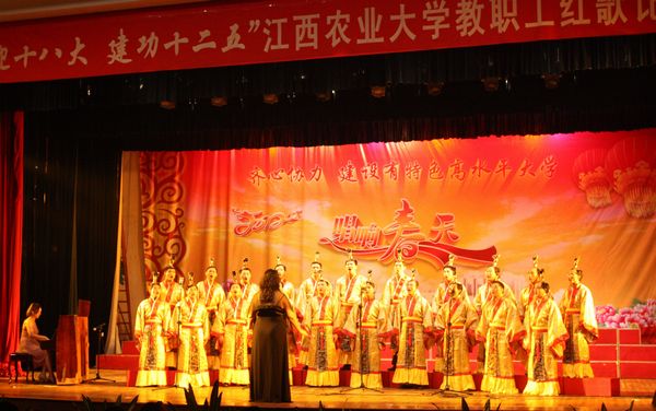“喜迎十八大,建功十二五”全校教职工红歌比赛于6月5日晚在校大礼堂举行。 金沙官网组织了21名男教师以中国第一部清唱剧《长恨歌》中《渔阳鼙鼓动起来》歌曲参赛。虽然艺术类歌曲难度大,但大家在黄玲老师的指导下刻苦排练,最终以92.3分的好成绩获得了二等奖。(院办张琳报道)