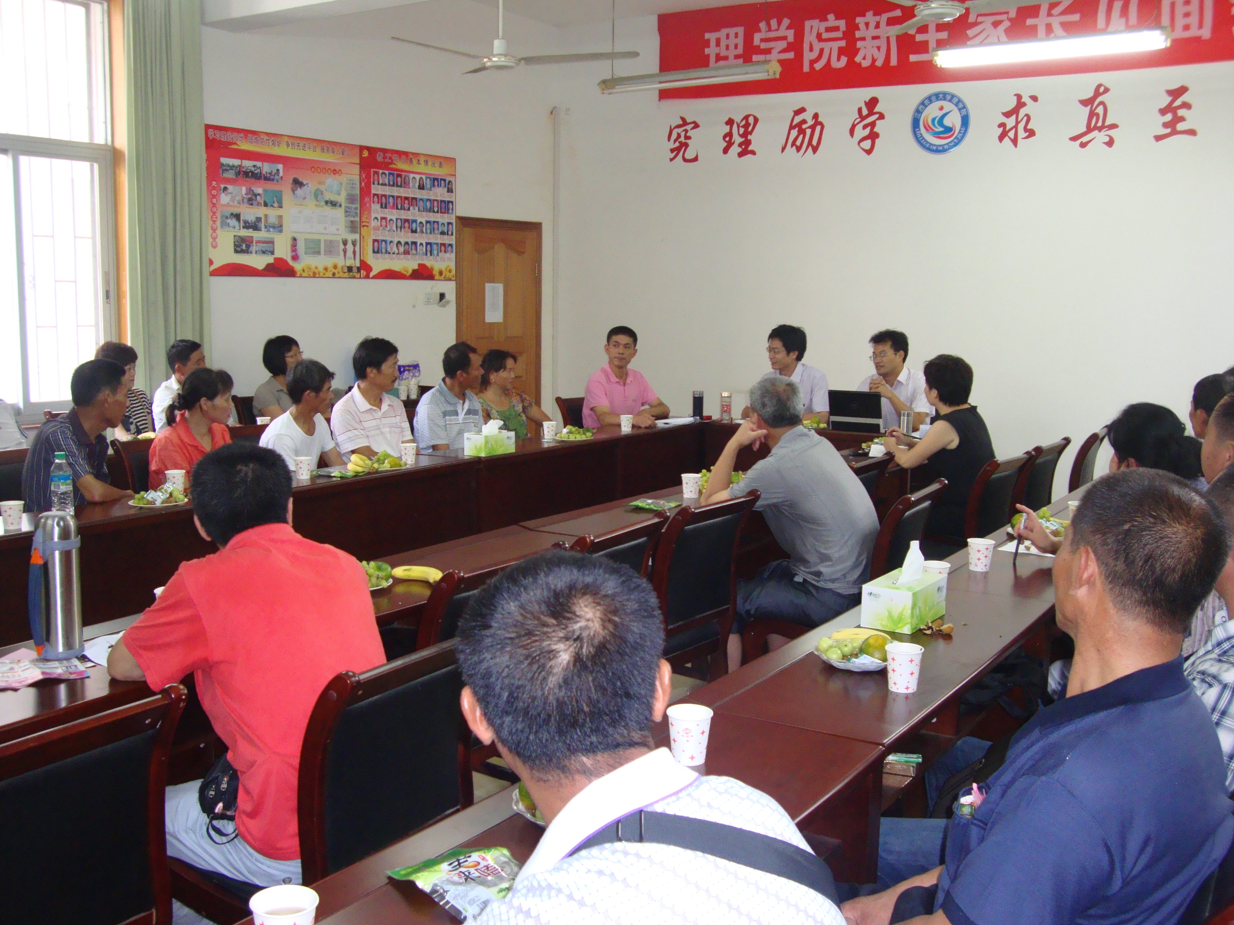 9月3日下午4点,理学院在院二楼多媒体会议室召开2011级新生家长座谈会。学院领导、各系主任、新生班主任及新生辅导员与27名新生家长代表参加了座谈。