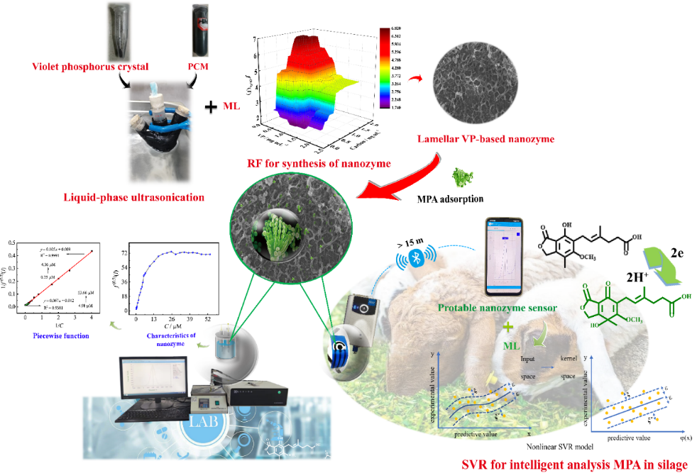 2023年7月6日,6165cc金沙总站文阳平教授和动科院瞿明仁教授为共同通讯作者,博士研究生戈钰为论文第一作者,在TOP一区《Biosensors and Bioelectronics》(IF=12.545)发表题为“Machine learning-guided the fabrication of nanozyme based on highly-stable violet phosphorene decorated with phosphorus-doped hierarchically porous carbon microsphere for portable intelligent sensing of mycophenolic acid in silage”的论文,该研究工作得到了国家自然科学基金和国家现代农业产业技术体系的支持。